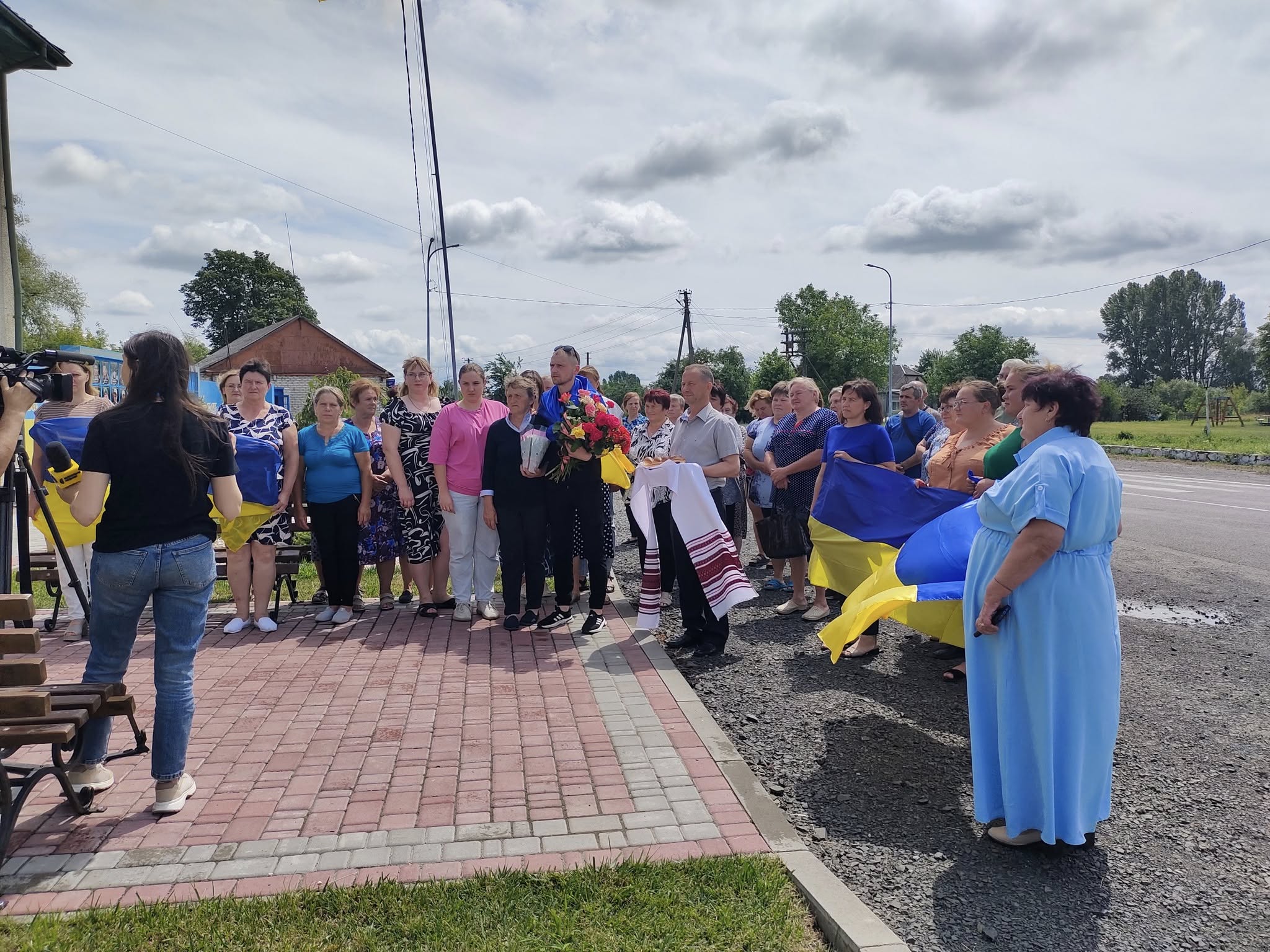 Біля сільської ради зібралися ті, хто встиг довідатися про те, що в захисника закінчилася реабілітація і він їде в рідний Щурин. Романа зустрічали хлібом на вишиваному рушнику, квітами та з українськими стягами.