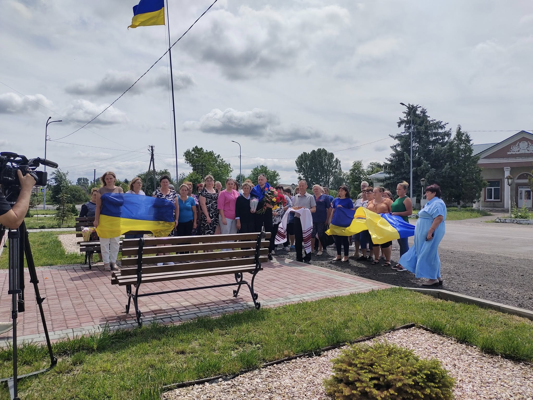 Роман разом з мамою Галиною та нареченою Христиною найперше пішли з квітами до Стели Героїв України, де на портретах – його загиблі односельчани.