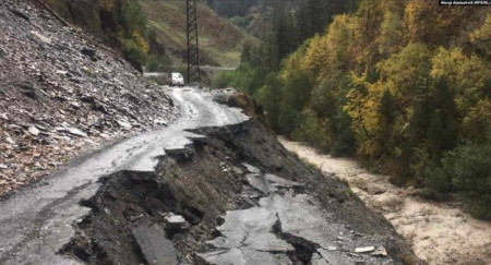 Після сильних злив у гірських річках піднялася вода і почалися зсуви. На дорозі Пшавелі-Абано-Омало зазнали серйозних пошкоджень одразу три ділянки.