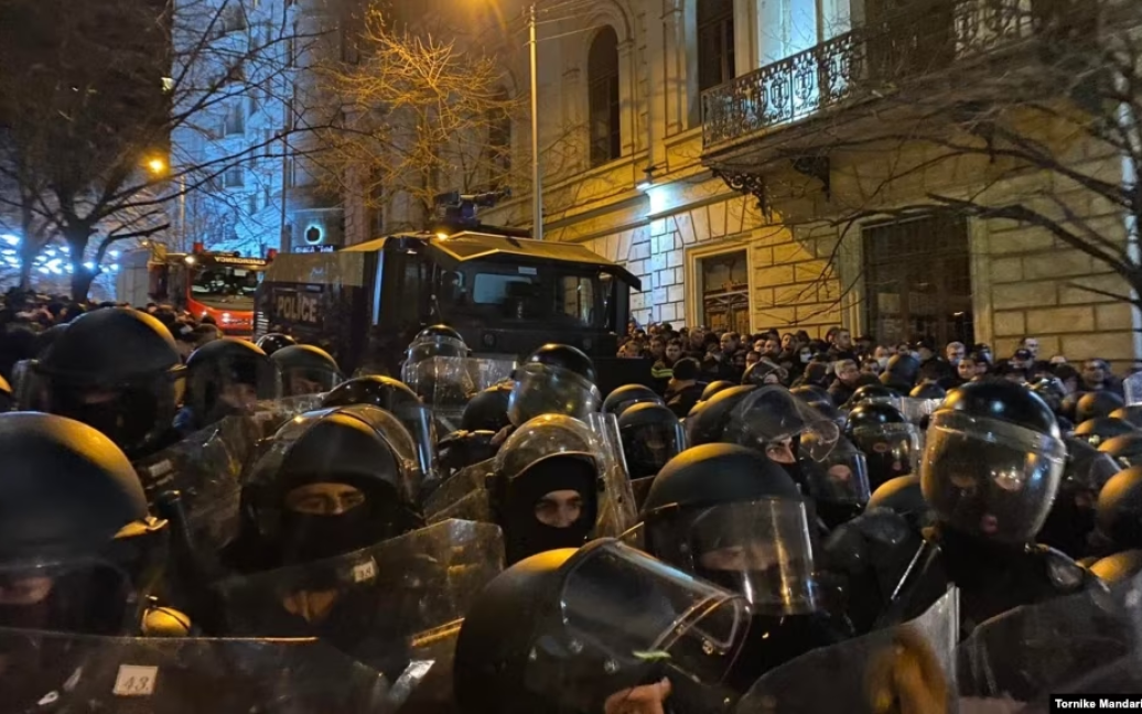 На тлі цього натовпи жителів Грузії вийшли на масштабну акцію протесту біля будівлі парламенту. Тисячі людей, які протестують проти ухвалення нового закону, перекрили центральний проспект.Люди вийшли з українськими та грузинськими прапорами. За даними місцевих ЗМІ, поблизу будівлі парламенту вже мобілізовано «спецназ», а також стягуються додаткові наряди силовиків. Є інформація, що силовики почали застосовувати сльозогінний газ, щоб розігнати протестувальників.Також повідомляють про сутички між поліцією та учасниками акції. За інформацією ЗМІ, з будівлі парламенту нібито евакуювали депутатів, також до центру прямують машини швидкої допомоги.