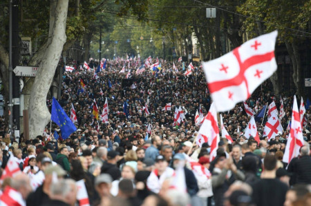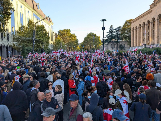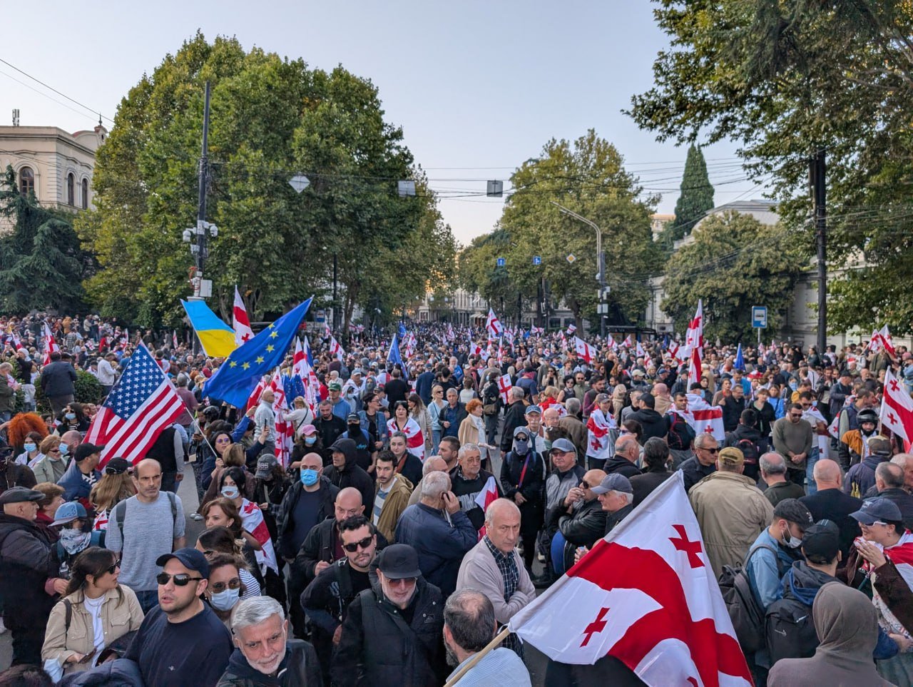 Вибори в Грузії відбуваються на тлі політичних репресій проти опозиційних діячів і громадянського суспільства. Через це в центрі Тбілісі проходить багатолюдна акція протесту.