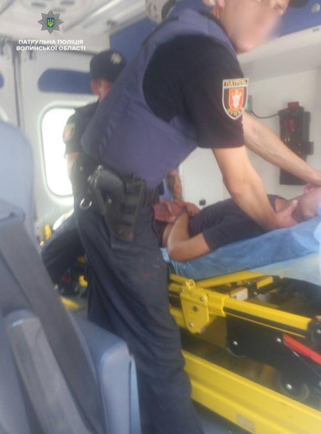 Патрульні поліцейські змушені були застосувати спецзасіб та помістили його у карету швидкої медичної допомоги, притримуючи всю дорогу, оскільки продовжував чинити опір.