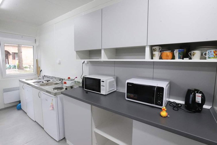 На території містечка є бібліотека, невеликий спортзал, дитяча ігрова кімната, місце для відпочинку та зона для прання і прасування.
