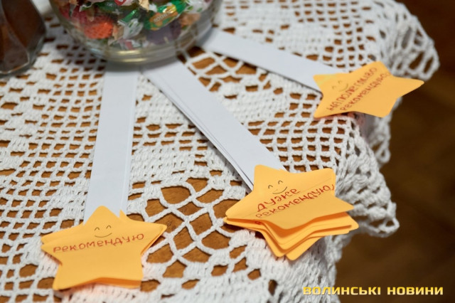 «Ми отримали 827 книжок за програмою поповнення бібліотечних фондів від Українського інституту книги: 317 для дорослого читання і 510 – для дитячого, – розповідає завідувачка відділу комплектування та каталогізування документів Оксана Коба. – Ми такої кількості дитячої літератури взагалі не отримували. Видавництв у цій програмі представлено аж 80. Усі вони також проходили експертний відбір в інституті книги. Ми відбирали книжки, бо треба було визначитися з-поміж майже трьох тисяч примірників, що саме нам потрібно. У кожної бібліотеки був особистий кабінет. Я сиділа тиждень, поки те все відібрала. Відповідно, в інституті книги дивилися запити й розподіляли літературу».Коли книги надійшли в бібліотеку, постало питання, що їх треба показати читачам. А для того треба було залучити тих, хто направду багато читає, аби ці шанувальники книги змогли поділитися враженнями й порекомендувати ту чи ту книжку друзям, родичам.Для цього у бібліотеці вирішили проводити засідання експертної ради читачів, до яких залучатимуть найактивніших шанувальників. Одне з таких засідань відбулося цього тижня. Експерти обирали топ-10 книжок від «Клубу сімейного дозвілля», голосуючи за улюблені твори фішками блакитного («рекомендую»), рожевого («дуже рекомендую») та жовтого («наполегливо рекомендую») кольорів. Також до уваги беруть якість книги, дизайн, поліграфію, розмір шрифту тощо.