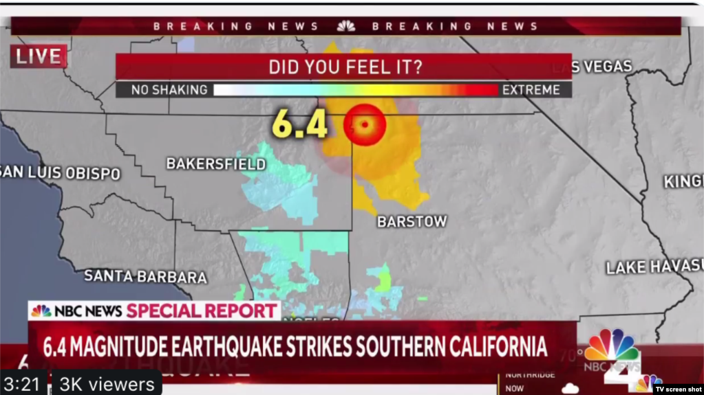 У Каліфорнії через землетрус магнітудою 6,4 в окрузі Керн запроваджено режим надзвичайної ситуації.