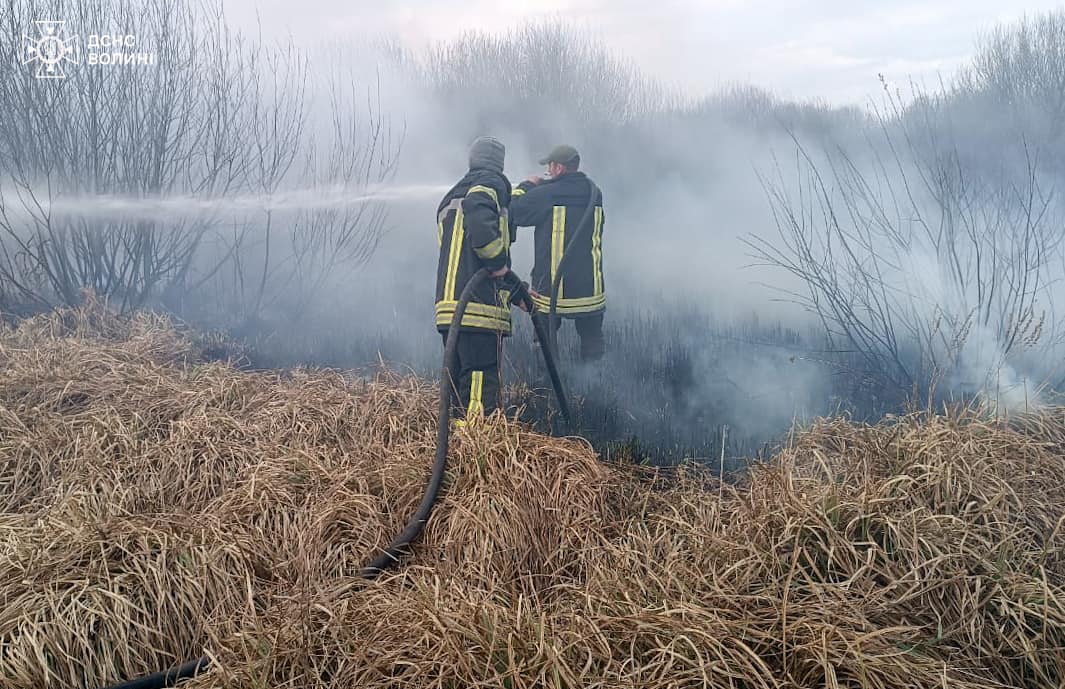 У Камінь-Каширському районі горить два гектари сухої трави на болоті