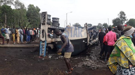 Тринадцять людей загинули в суботу ввечері після того, як на дорозі в одному із сіл Кенії загорівся і вибухнув бензовоз.