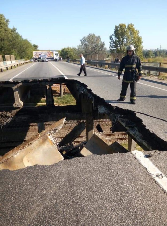 У Харкові вранці 25 серпня стався частковий обвал автомобільного мосту від ринку «Лоск» в напрямку селища Пісочин, жертв та постраждалих внаслідок події немає.
