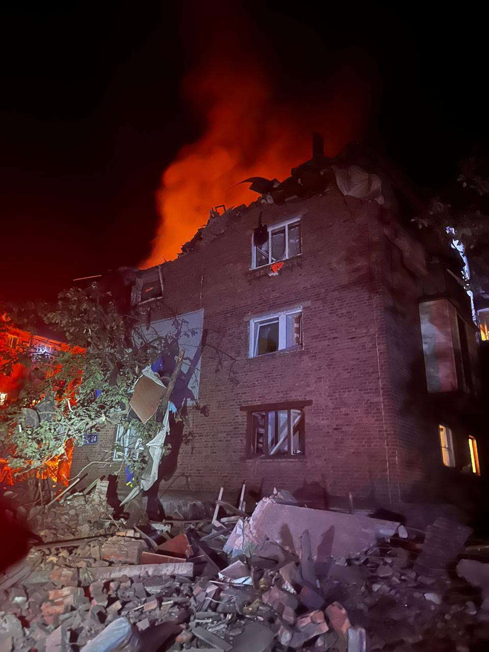 У ніч на п’ятницю російські військові влучили у житловий будинок у Харкові, троє людей загинуло, 23 постраждало, серед них 12-річна дівчинка та 12-річний хлопчик, а також медпрацівник та поліцейська, які прибули на місце вибуху. Виникла пожежа та є руйнування.