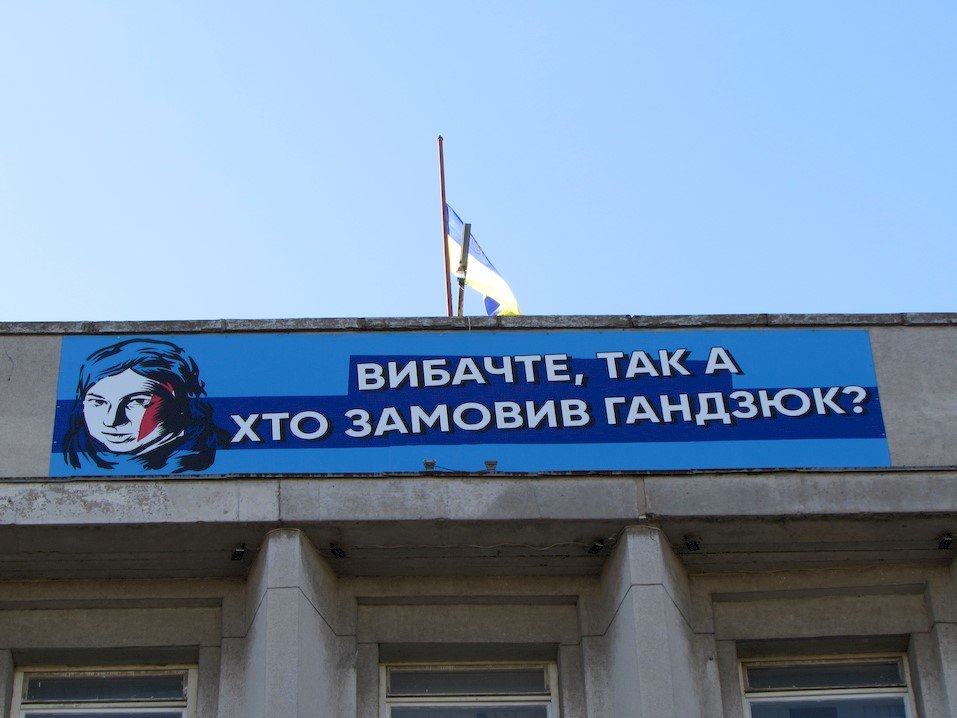 На будівлі мерії приспущено прапори України та Херсона. У вестибюлі виставили фото Катерини з траурною стрічкою, стоять квіти. Над входом до будівлі активісти повісили плакат із написом «Вибачте, так, а хто замовив Гандзюк?»
