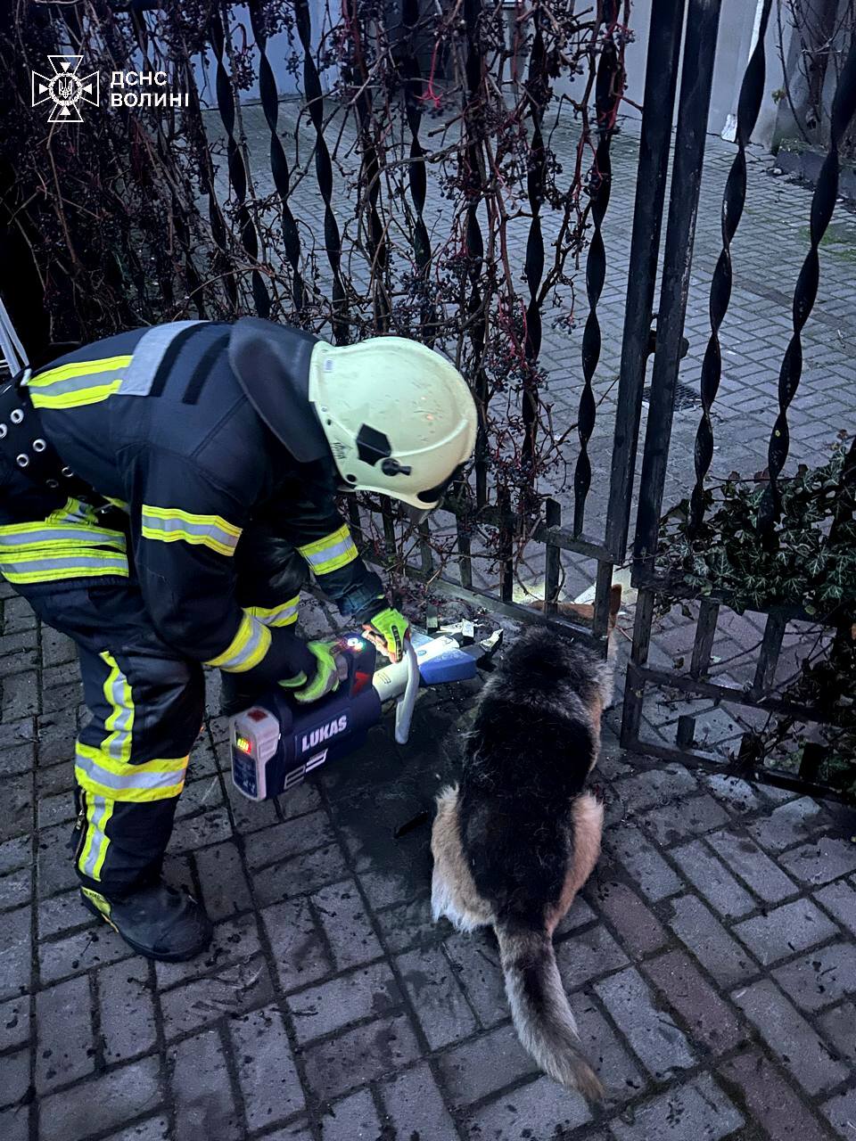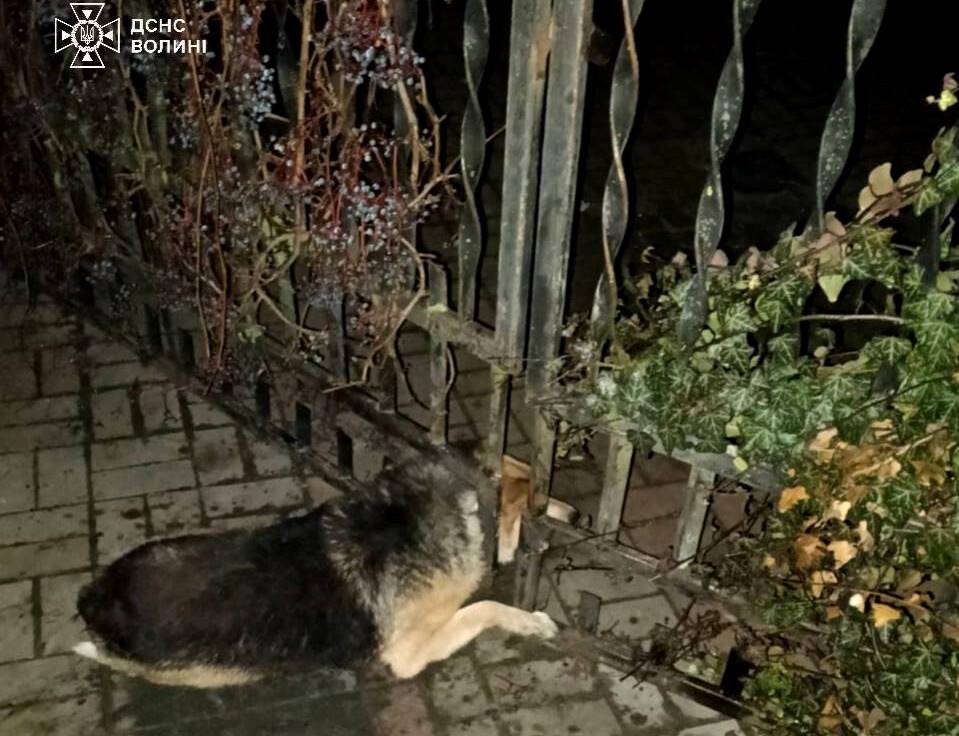 Сьогодні о 07:44 на лінію 101 надійшло повідомлення про те, що в місті Ківерці собака застряг у металевому паркані та не може самостійно вибратися.
