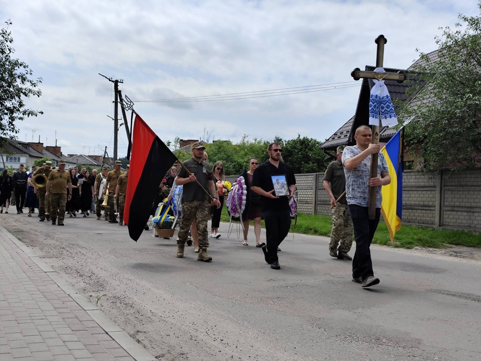 Траурний кортеж з тілом Героя проїхав містом до рідної хати. На жаль, жорстока війна забрала життя ще одного Героя, який мужньо боровся за незалежність України.