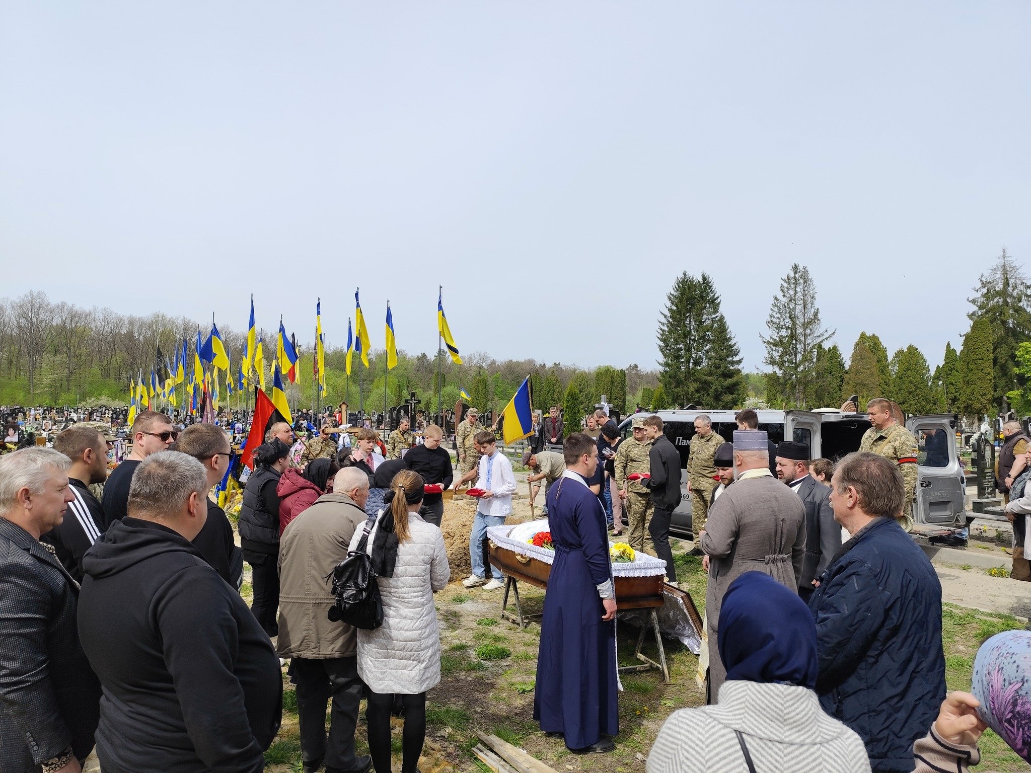 Попрощалися з воїном рідні, друзі, знайомі, побратими. Вшанували пам’ять Героя очільники міста. Вдячні земляки, схиливши у скорботі голови та вклякнувши на колінах, щирою молитвою просили у Всевишнього про спокій душі воїна.