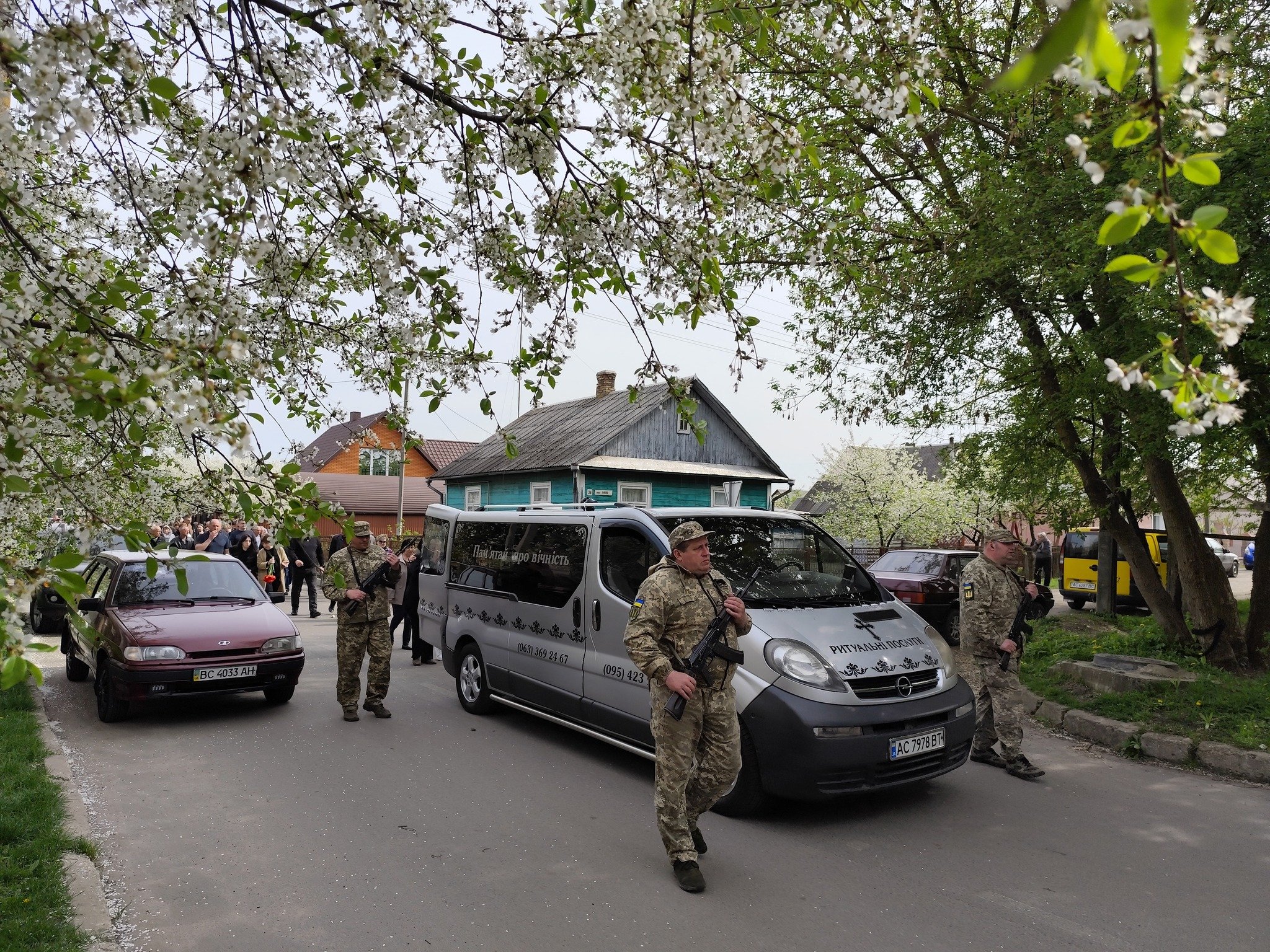 Траурна процесія йшла від рідного дому вулицями міста до собору Покрови Пресвятої Богородиці, де чин поховання здійснив протоієрей Іван Семенюк. Місцем вічного спочинку для великого патріота стала Алея Слави на міському кладовищі. Воїни почесної варти тричі відсалютували Герою, шануючи його ратний подвиг.
