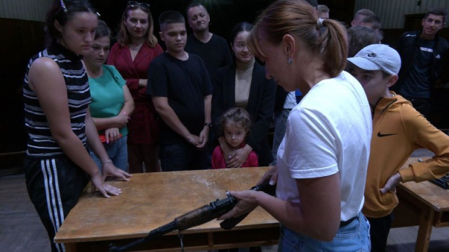Оксана Горкавчук на заняттях збирала автомат. Каже: прийшла вдруге, навчитися користуватися зброєю не складно.Чотирнадцятирічна Анна Кулацька розповідає: прийшла на навчання разом зі своїми друзями із дитячої «Школи безпеки».