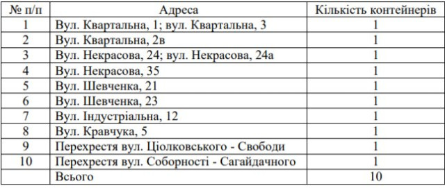 Окрім того, забороняється перенесення контейнерів із місць їх розташування, визначених рішенням виконавчого комітету.