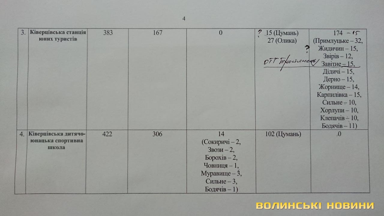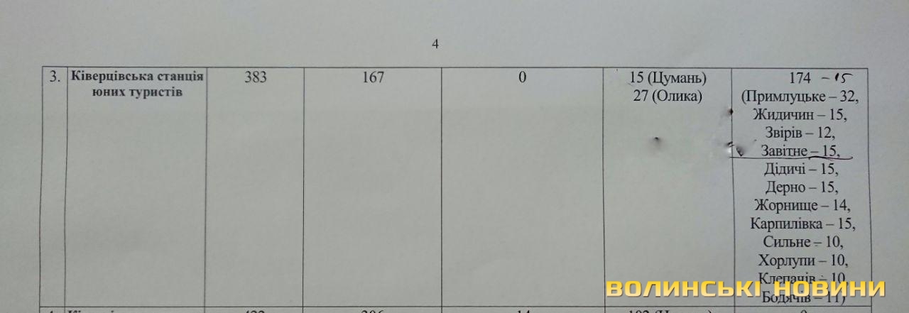 «Це стосується районного центру дитячої та юнацької творчості, районного центру еколого-натуралістичної творчості учнівської молоді та районної станції юних туристів Волинської області.