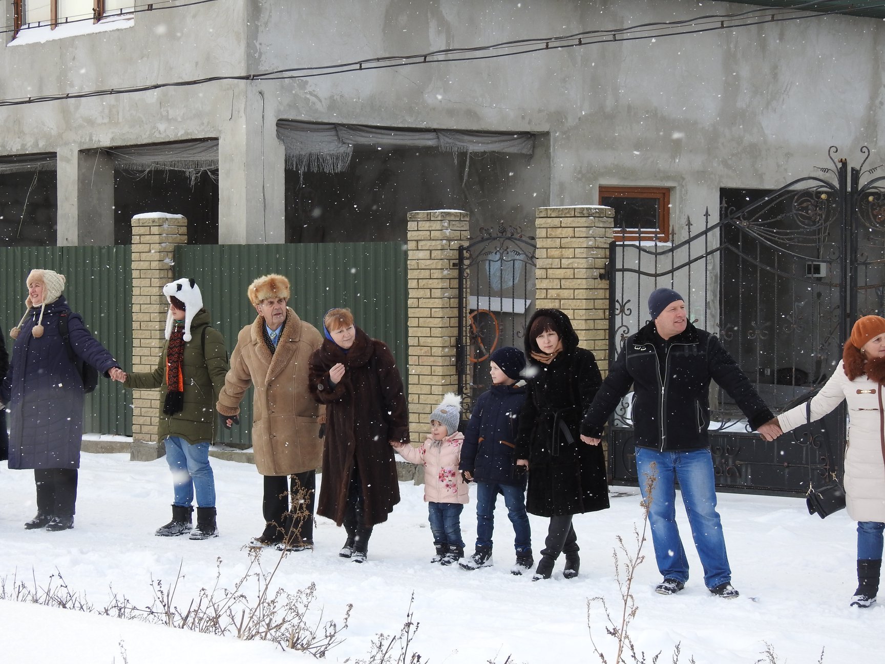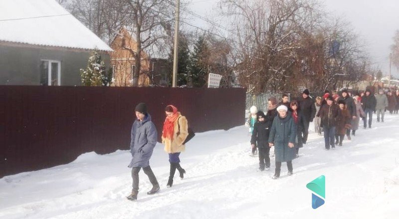Люди, які були на Богослужінні, разом зі священиком – протоієреєм Михайлом Бучаком - вийшли з храму і з колядками рушили в бік іншої церкви.