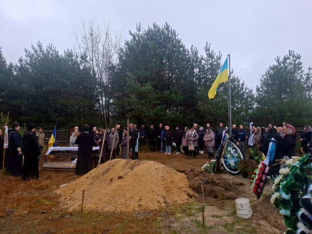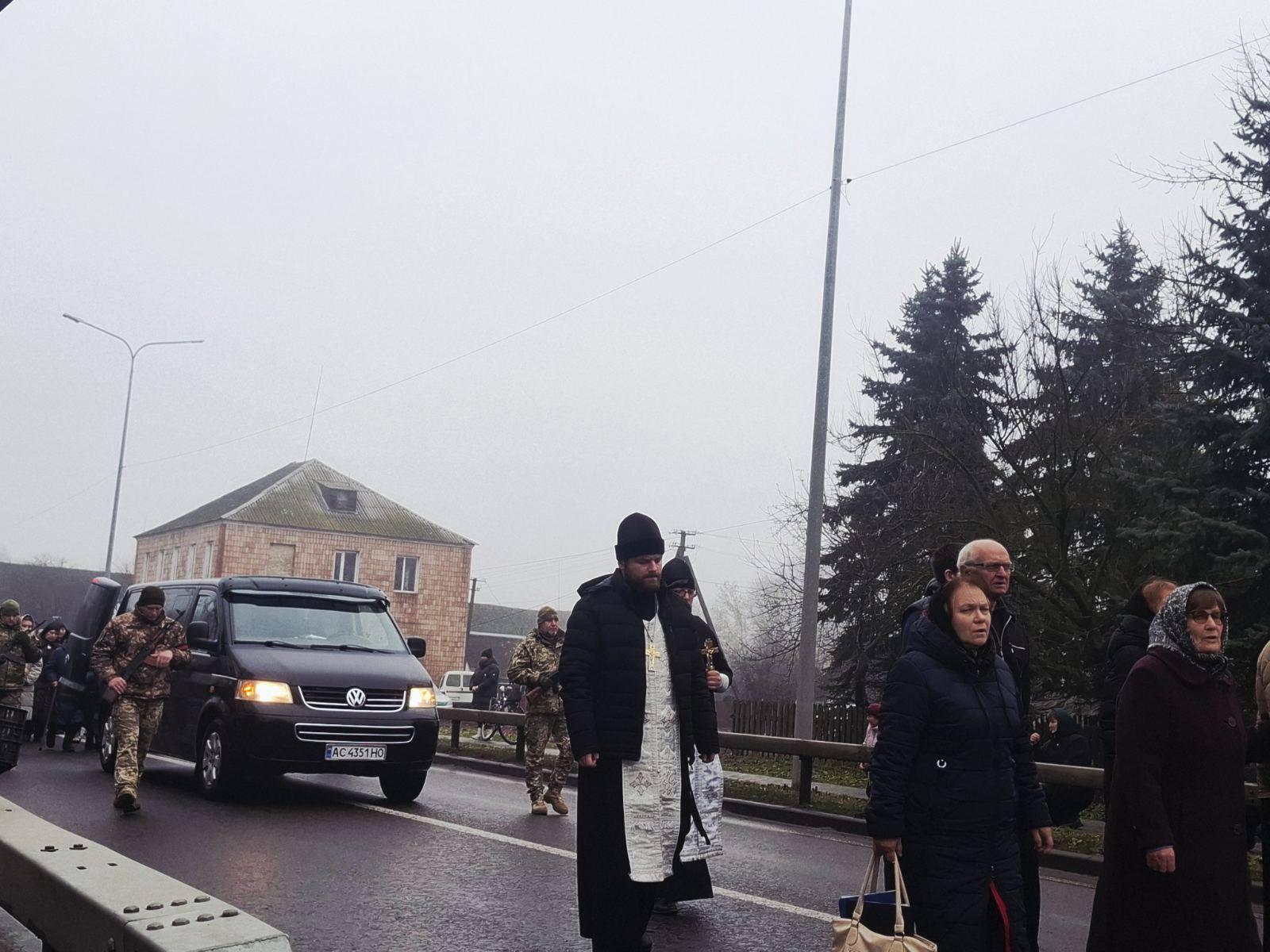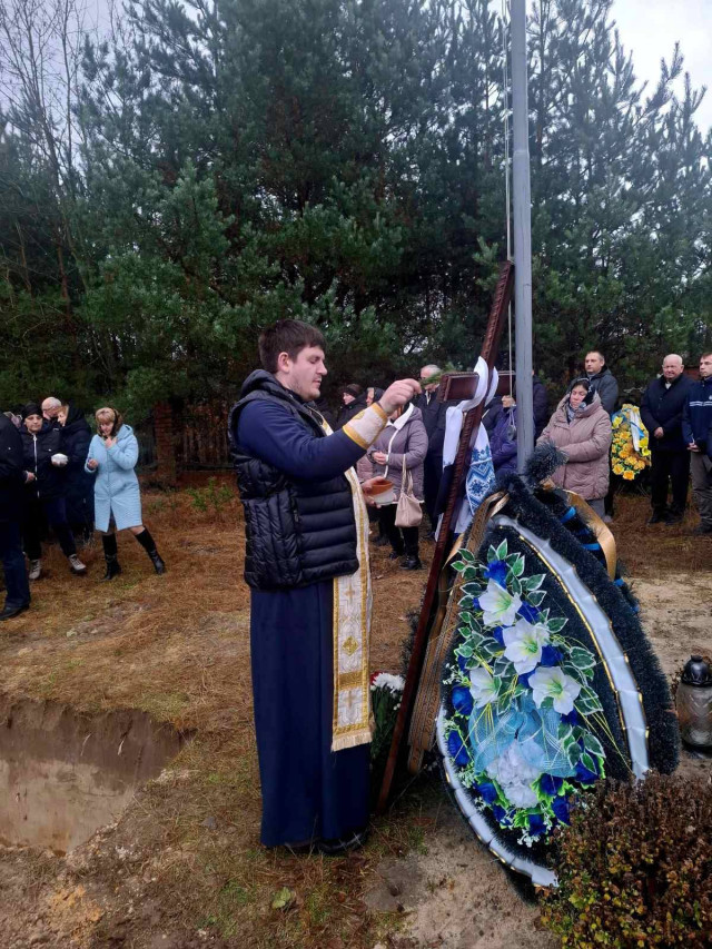 Відспівали воїна у Свято-Миколаївському храмі ПЦУ. Поховали з усіма почестями на місцевому цвинтарі.