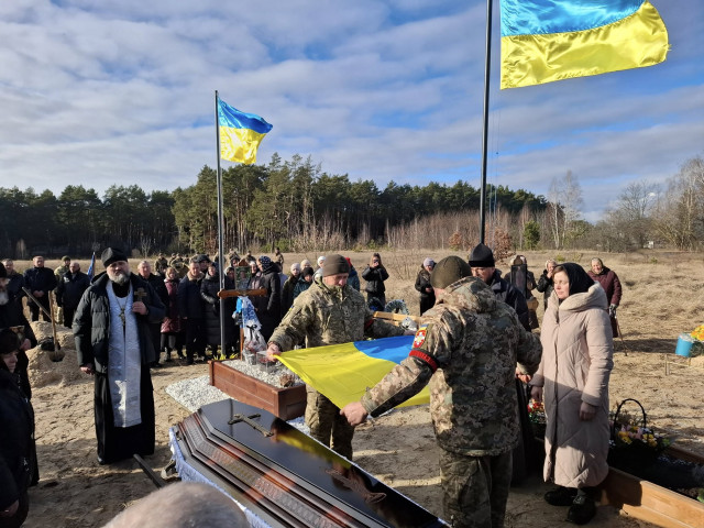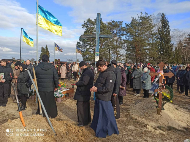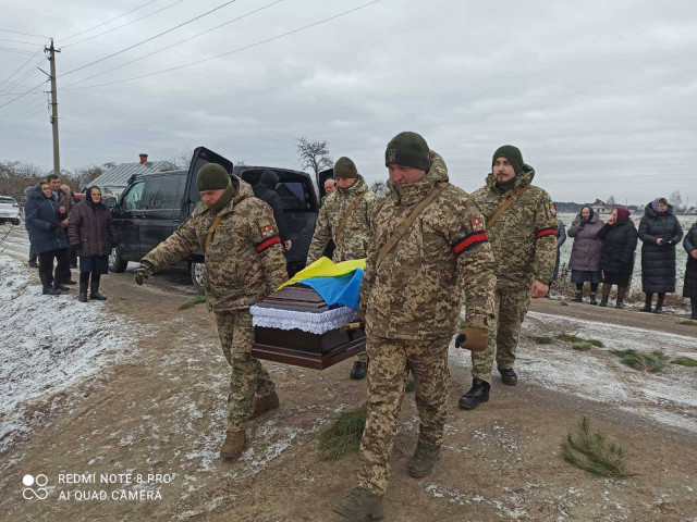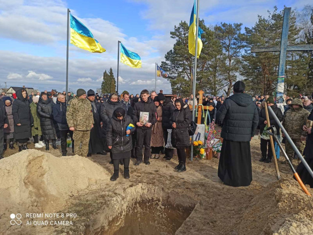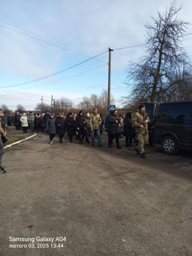 Віддати шану захиснику в його рідному селі зібралися майже всі жителі – із жовто-блакитними прапорами, квітами та вінками з жалобними стрічками провели Героя в останню земну дорогу.