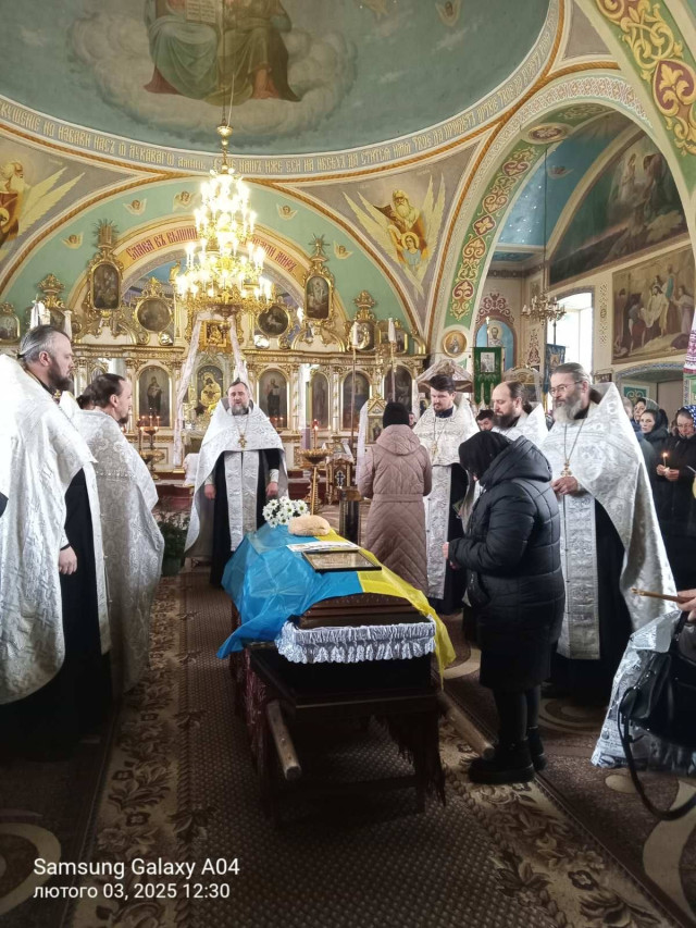 Заупокійну літію за загиблим відслужили в Свято-Успенському храмі УПЦ у Старосіллі.