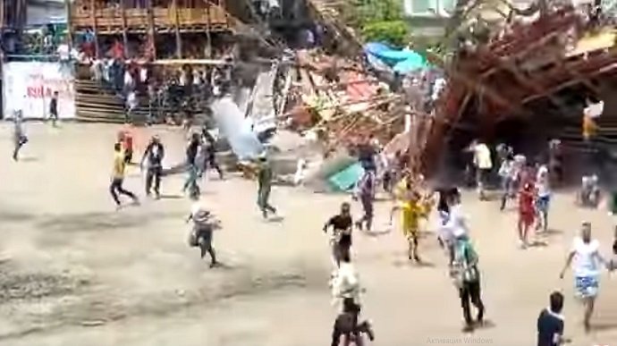 На опублікованому відео видно, що трибуна, заповнена глядачами, падає, а люди втікають у різні боки.
