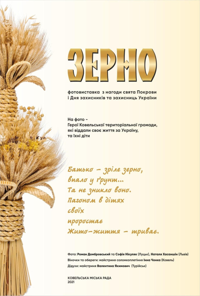 З середи, 13 жовтня, з нагоди свята Покрови і Дня захисників та захисниць України, у Ковелі діятиме тематична фотовиставка з символічною назвою «Зерно».