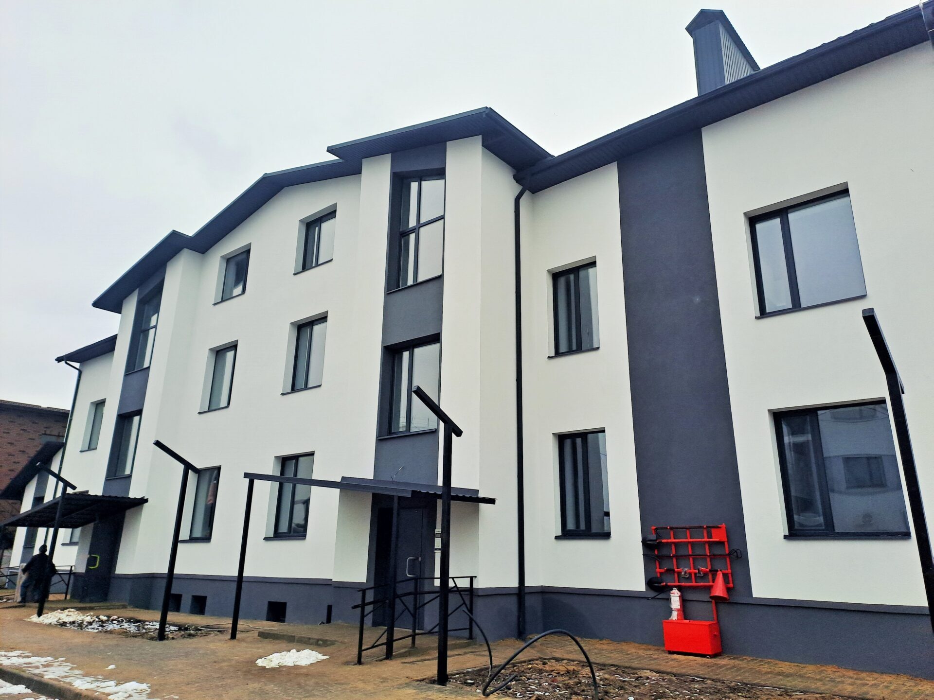 Новий житловий комплекс складається з двох секцій. Однокімнатні квартири – повністю готові для проживання. Тут – обладнані кухні з побутовою технікою, санвузли, у кімнатах – диванчики, крісла та шафи. У дворі – сучасний дитячий майданчик, місця для паркування автомобілів.