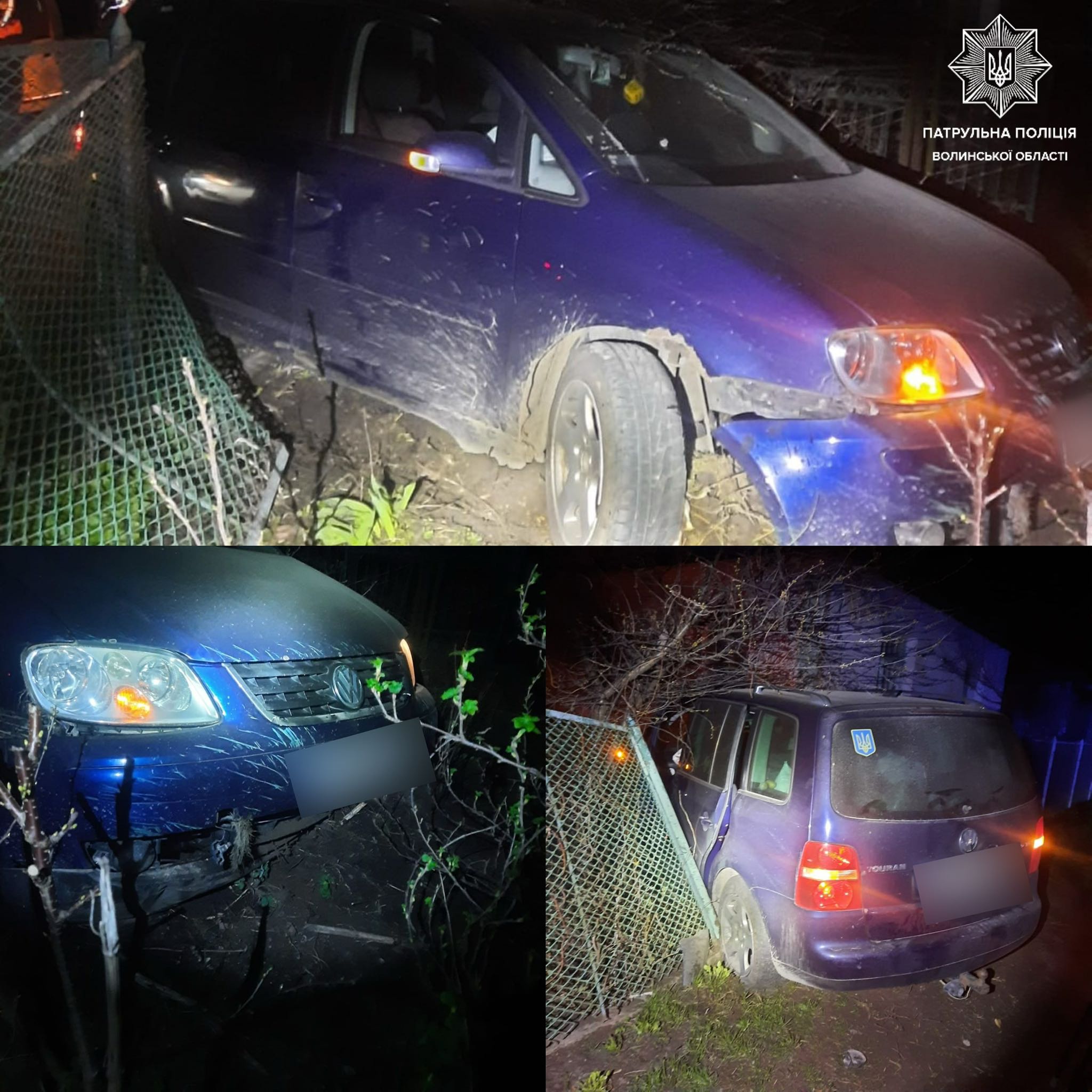 Поліцейські увімкнули проблискові маячки, проте водій проігнорував вимогу про зупинку й спробував утекти. Однак він не впорався з керуванням і врізався в паркан, повідомили у патрульній поліції Волині.