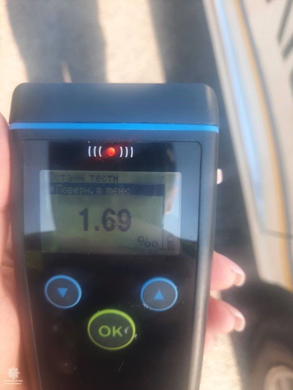 Крім того, спілкуючись з винуватцем ДТП, правоохоронці помітили у нього ознаки алкогольного спʼяніння. Чоловік пройшов огляд, результат – 1,69 проміле.