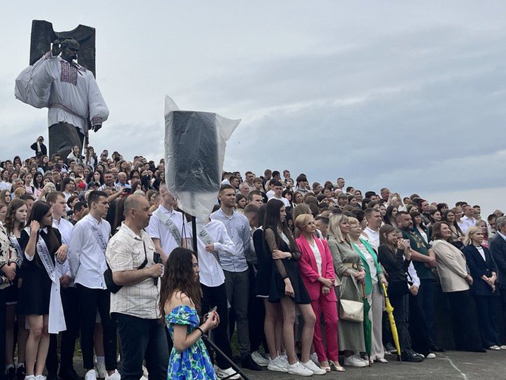 На символічному місці – височині поблизу пам’ятника Тарасові Шевченкові, який з нагоди цієї події вбрали у вишиванку, зібралися сотні містян: представники влади, вчителі, батьки, а понад пів тисячі випускників закружляли у прощальному шкільному вальсі.Читати ще: «Бронювали хлопців ще з 9 класу»: як волинські школярі готуються танцювати вальс на останньому дзвонику