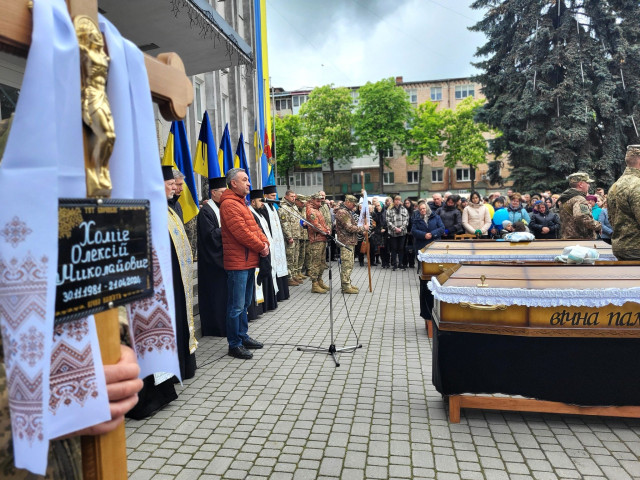 «Два Олексії – два побратима, які разом захищали країну, загинули в один день – 21 квітня. Висловлюю щирі співчуття родинам наших Героїв. Всім, хто знав, любив і поважав наших захисників», – сказав міський голова Ігор Чайка під час громадянської панахиди.