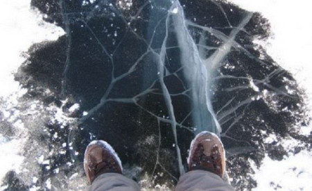 К*рва, ще того льоду і не було. Куди ж ви прете? З голоду здихаєте без того окуня?