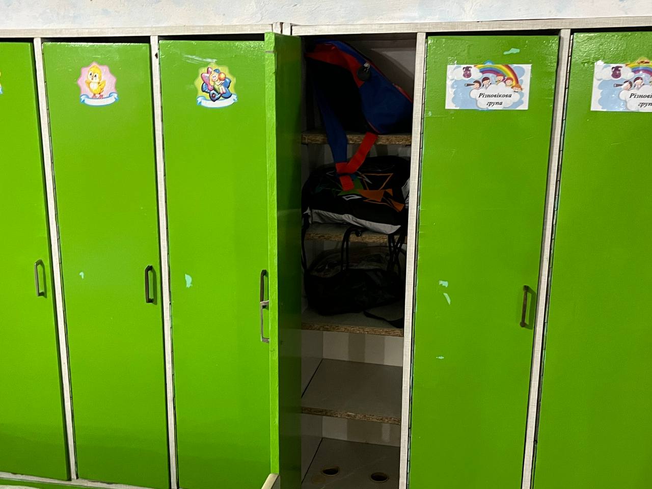Знайшли також використання для старих шафок, що лишилися на господарстві після заміни їх на нові, а відтак – зекономили кошти. Частину з них використовують за призначенням: діти там лишатимуть свої тривожні валізки. З інших шафок змайстрували лавочки для сидіння.У частині підвального приміщення, що використовують як овочесховище, облаштували найпростіше укриття для персоналу садка – кухарів, технічних працівників.