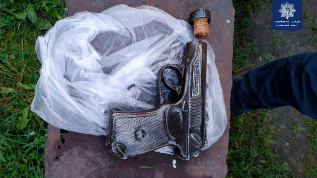У помешканні знайшли також декоративну флягу у вигляді зброї. На місце викликали слідчо-оперативну групу. Відповідно до ст. 208 КПК, чоловіка затримано до відділу поліції, йому може загрожувати покарання за розбій.