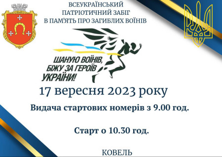 У неділю, 17 вересня, у Ковелі відбудеться Всеукраїнський патріотичний забіг в памʼять про загиблих воїнів «Шаную воїнів, біжу за Героїв України».