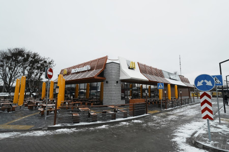«МакДональдз» – зручний для жителів міста й автомобілістів, адже знаходиться на міжнародному автошляху М07. З 5:00 до 23:30 відкриті дві лінії «МакДрайву», де також облаштовані додаткові паркомісця для зручного очікування замовлень. На території є велопарковка.