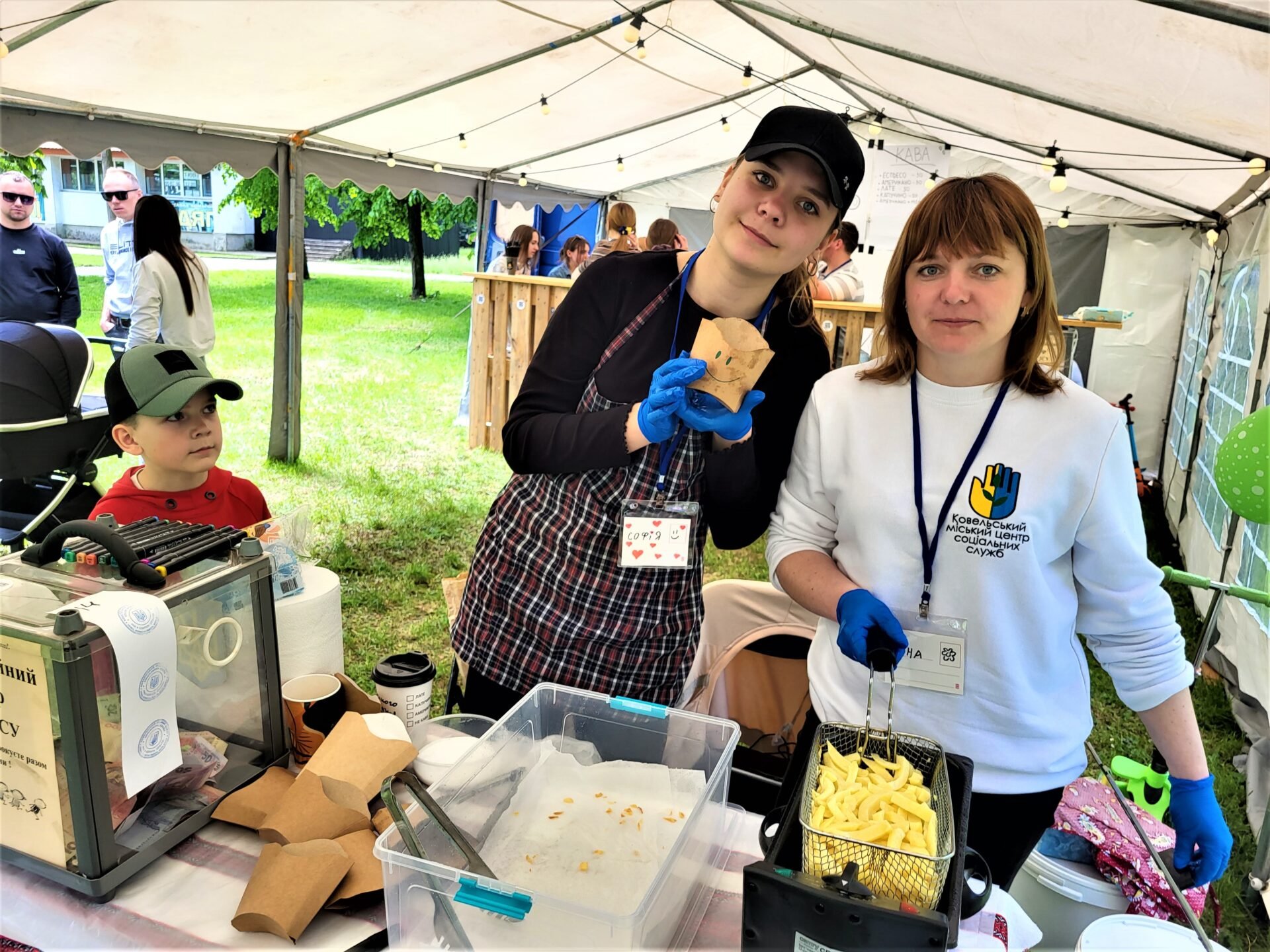 Завітали на свято й ті, хто був змушений залишити домівку, і тепер їх прихистив Ковель: Яна Батаєва зі Слов’янська, Олег та Світлана Фролови з Каховки.«Фантастично, емоції надзвичайні. Давно уже не переживали чогось подібного. Важко щось виділити. Дуже великий вибір цікавих забав для сімей, особливо для дітвори», – діляться вони.До вподоби усім були танцювальні майстеркласи та рухлива анімація з Social Dance від Наталки Смілої та Олександра Кашевського – тренерів Танцювального Клубу для дорослих СК-ДЕНС, кафедри фітнесу та циклічних видів спорту, факультету фізичної культури, спорту та здоров’я Волинського національного університету імені Лесі Українки.Побував на святі і поспостерігав за цією веселою метушнею міський голова Ігор Чайка.«Дуже гарний задум. Ковельчани мають нагоду провести весело, дружно дозвілля. А ще всі разом підтримати наших захисників. Спасибі організаторам. Вони доклали багато зусиль, залучили багато однодумців, аби перший фестиваль сім’ї у Ковелі відбувся і залишив хороші враження», – зазначив він.Олена із сином Данею, їхні рідні ярмаркували на фестивалі з випічкою, яку приготували власноруч. Вони збирають кошти на автомобіль для чоловіка й татка Романа. Він служить у 100-й бригаді. Третій місяць уже воює на передовій. Тож авто йому з побратимами зараз дуже потрібне.