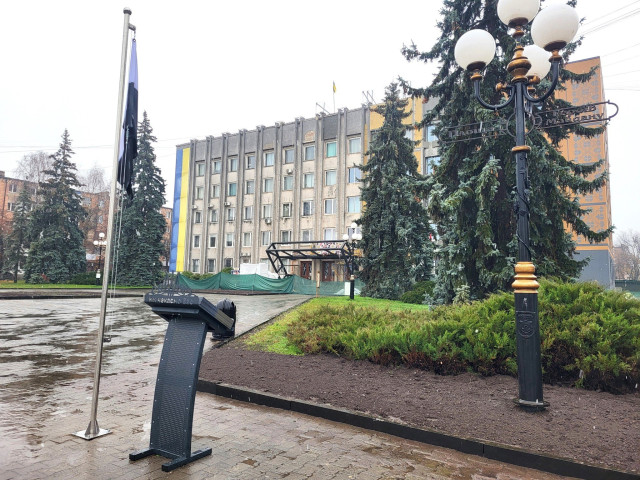 Поруч здіймається чорно-білий прапор Надії, який, як і сама інсталяція, нагадує про незламність і єдність нашої громади.
