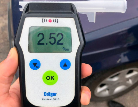 Охоронці правопорядку запропонували чоловікові пройти огляд на стан алкогольного сп’яніння за допомогою приладу Drager. Результат – 2, 52 проміле, що перевищує допустиму норму в 13 разів.
