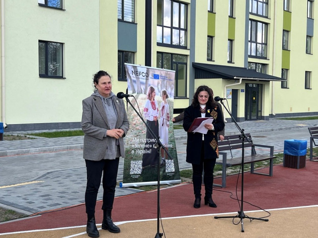 Це важливе досягнення – перший проєкт програми «Житло для внутрішньо переміщених осіб (ВПО) та відновлення звільнених міст в Україні», який було повністю завершено серед дев’яти громад-учасниць, – стало можливим завдяки фінансуванню Європейського Союзу, його реалізовано під управлінням Північної екологічної фінансової корпорації (НЕФКО), а також за підтримки місцевої влади.Новий житловий комплекс вартістю приблизно €5 мільйонів було побудовано відповідно до сучасних технічних та екологічних стандартів для забезпечення комфортного, безпечного та енергоефективного проживання. У його основу закладено передові будівельні технології, що гарантують високу теплоізоляцію, зменшення енергоспоживання та мінімізацію впливу на навколишнє середовище. Використання сучасних енергозберігальних систем, сонячних панелей та автоматизованих систем контролю температури й автоматичного водопостачання відображає найкращі світові практики сталого розвитку.Крім того, новобудова обладнана укриттям із системою вентиляції та запасним виходом. Квартири на першому поверсі передбачені для маломобільних груп населення.Крім технічних переваг, комплекс відповідає високим екологічним стандартам, включаючи використання екологічно чистих матеріалів, систем сортування відходів та озеленення навколо будівлі. Це не лише сприяє збереженню навколишнього середовища, а й створює приємне та здорове середовище для мешканців.