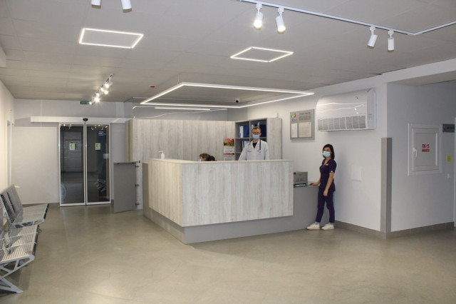 Впорядкували та облаштували для зручності відвідувачів і прилеглу територію. Поряд зі сходами – підйомник для маломобільних пацієнтів, праворуч – окремий в’їзд для карет швидкої допомоги. Хворих транспортують через критий павільйон одразу в приміщення, де на них уже чекають чергові медики.До послуг пацієнтів – просторі палати для тимчасового перебування, п’ять санвузлів (зокрема два – для людей з інвалідністю), оглядові та діагностичні кабінети. Поряд з ними – палата інтенсивної терапії, де є можливість надавати увесь спектр реанімаційних послуг критичним хворим.Далі розмістилися операційний та рентгенохірургічний блоки. Тут проводитимуть невідкладні оперативні втручання.
