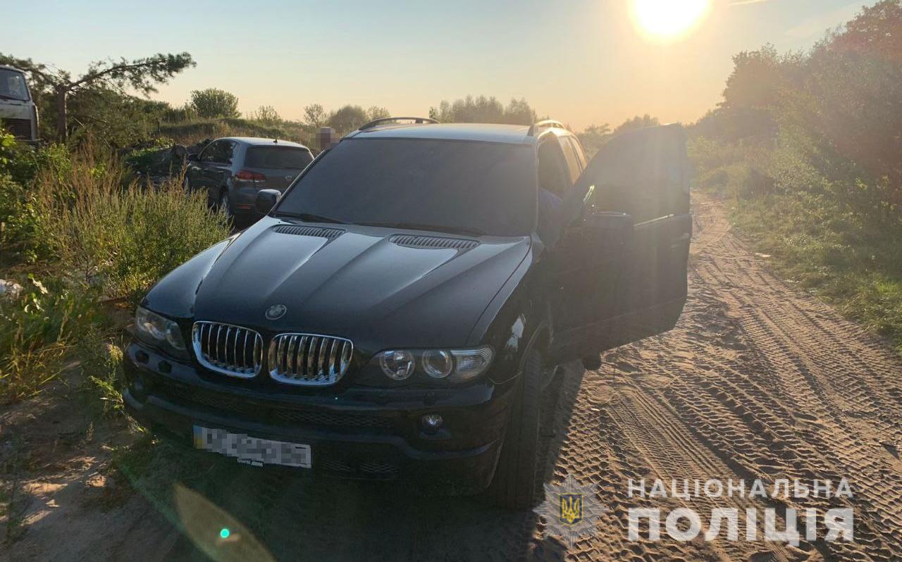 Співробітник правоохоронного органу виявив вантажний автомобіль МАЗ, навантажений піском, та навантажувач. Поруч перебували двоє невідомих чоловіків.