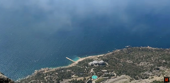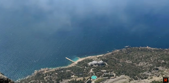 «Спочатку на місці цього палацу була будівля пансіонату «Мис Айя». Але потім місце сподобалося Віктору Януковичу, який все там зламав, вирубав реліктові дерева і почав будувати собі літню дачу. Після того як Путін у 2014 році анексував Крим, майно в Януковича відібрали і передали у державну власність. Тепер тут справжній палац», – пишуть розслідувачі.Головний будинок має площу понад 9000 м², будинок для прийому гостей – майже 5000 м². Також на ділянці є окремі будівлі для персоналу, технічні споруди і новий вертолітний майданчик. А внизу – власна набережна, пірс і штучний пляж з білим піском.За даними ФБК, будівництво коштувало приблизно 10 мільярдів рублів (майже $130 мільйонів, – ред.)