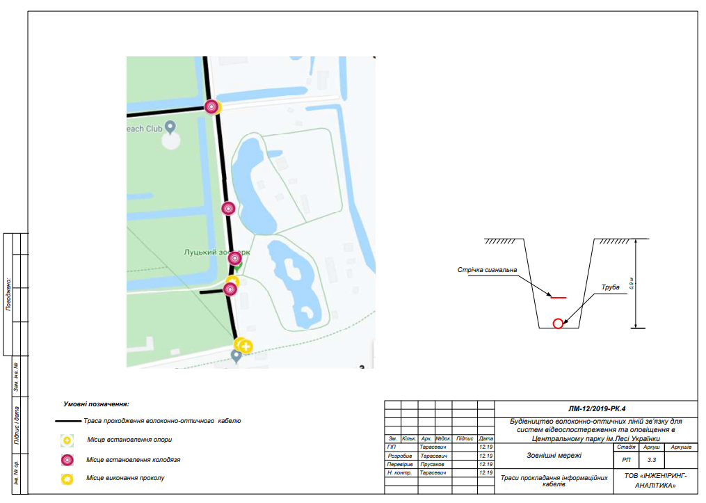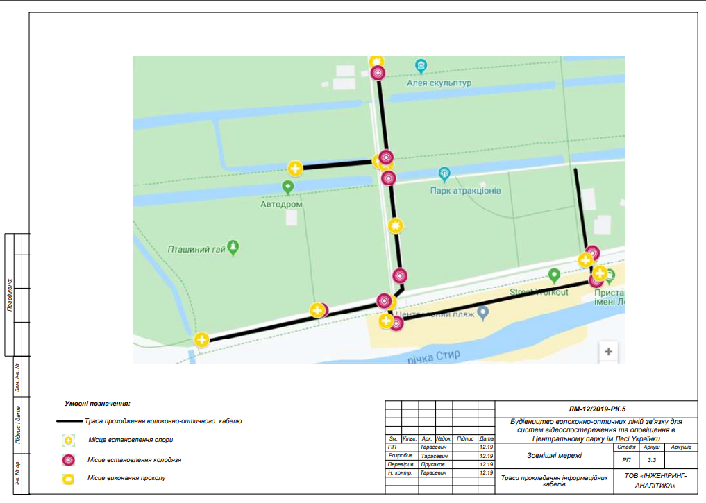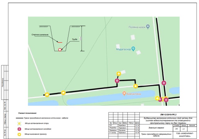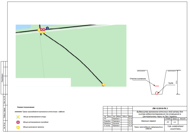 Йдеться, зокрема, про встановлення 10 стовпів, прокладання 3500 метрів волоконно-оптичного кабелю, 3500 метрів силового кабелю, копання траншеї, встановлення 20 колодців.