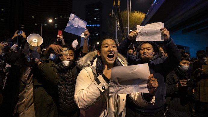 По всьому Китаю спалахнули масові протести проти карантинних заходів, які переростають в антиурядові, протестувальники скандують антиурядові гасла та вимагають відставки лідера республіки Сі Цзіньпіна.