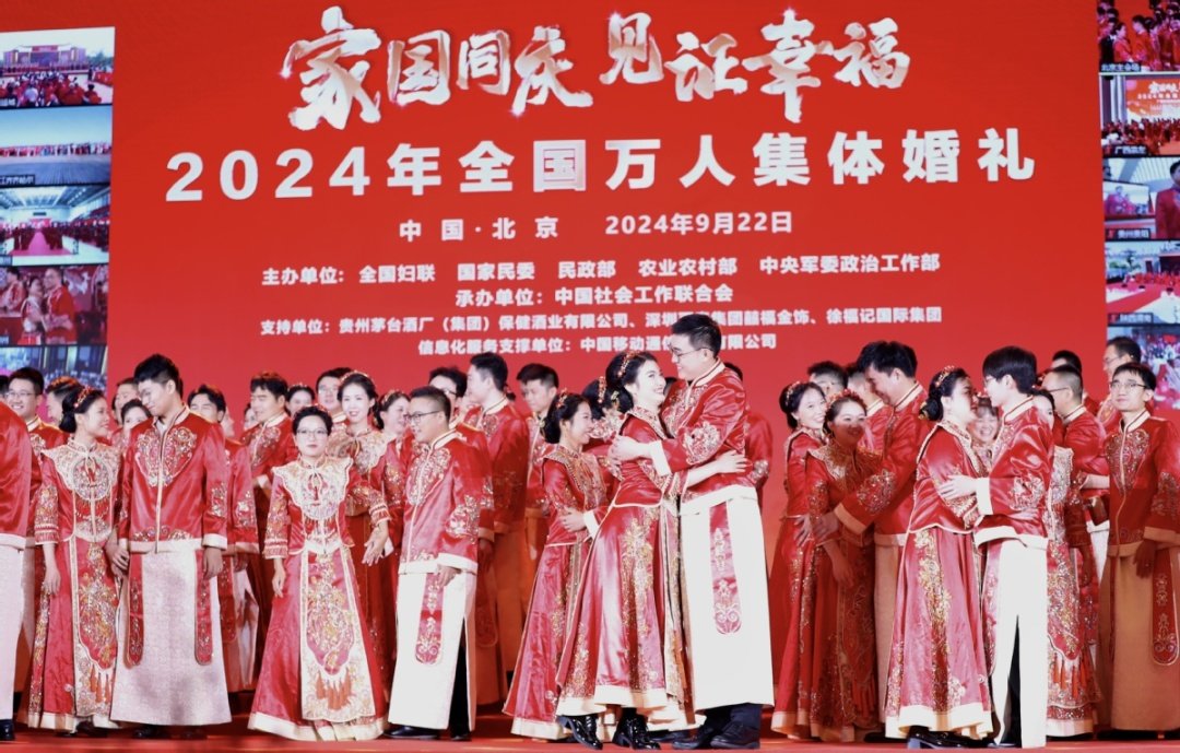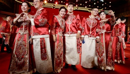 Для весілля 5 тисяч пар одягнулися в традиційні китайські весільні сукні, обмінялися подарунками та урочисто зачитали свої весільні обітниці, а на додаток також виступили з пропозицією спростити весільні процедури та відмовитися від високовартісних подарунків на заручини, через які багато пар не можуть побратися.