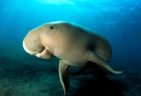 Дюгонь – унікальний морський персонаж. Завважки майже півтонни, це єдиний морський ссавець-вегетаріанець. Він зовнішньо схожий на ламантина, але відрізняється своїм китовим хвостом і «добродушною вдачею». Дюгонь відомий як найніжніший гігант в океані. Імовірно, повільна, розслаблена поведінка зробила його вразливим для надмірного вилову риби та нещасних випадків на суднах.