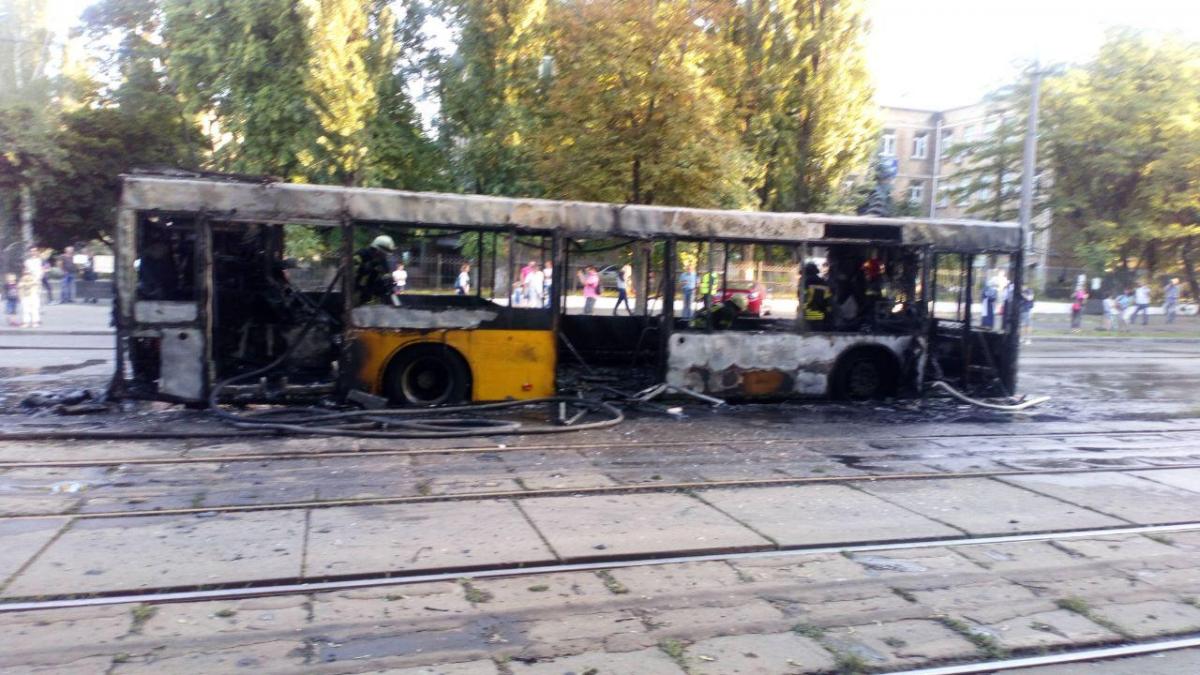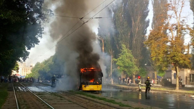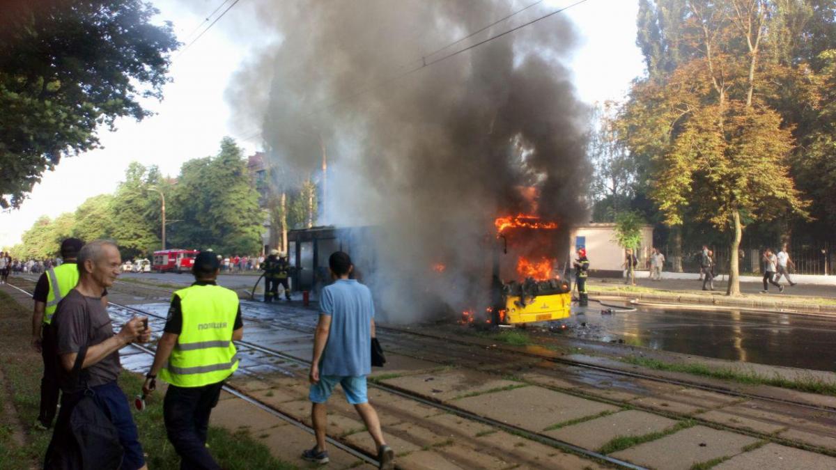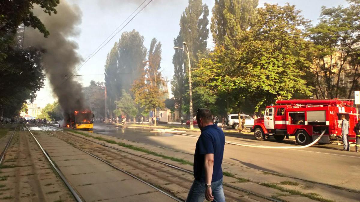 «З 19:03 заблоковано рух трамвайних маршрутів на вул Дегтярівська, 10 в напрямку ст. м. Політехнічна, загоряння автобуса, без потерпілих. На місце направлені аварійні служби підприємства, поліція і Держнс», – наголошується в повідомленні відомства.