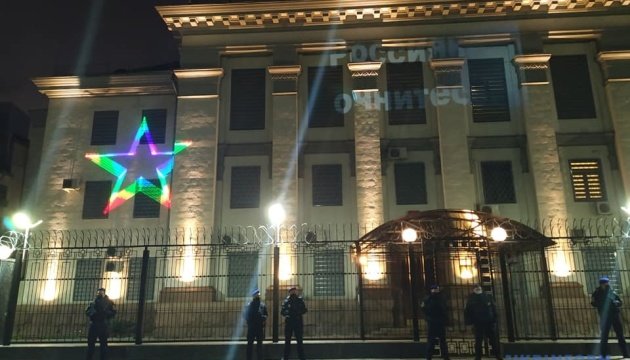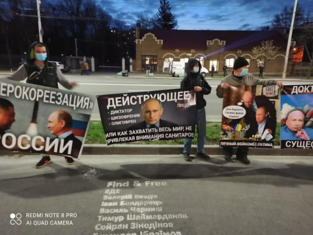Громадська організація «Агенція розвитку демократії та інформаційних свобод» (АРДІС) напередодні послання Путіна до Федеральних зборів РФ провела акцію під посольством Росії.